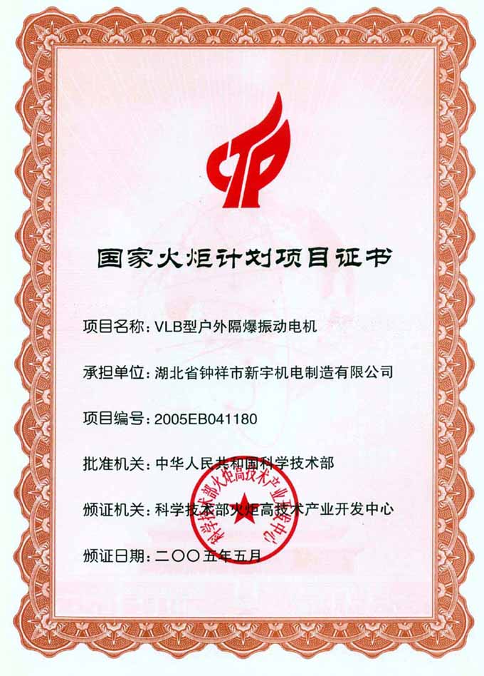 國家火炬計劃VLB項目證書