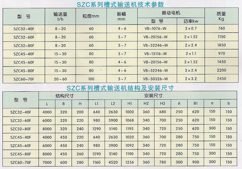 SZC系列槽式振動輸送機是以兩臺振動電機為激振源的新型振動輸送設備。機器在遠超共振狀態下工作,工作時不會使槽體振幅出現明顯增大或減小現象,振幅較穩定。同時,可以調節激振力,進而調節輸送量。可廣泛用于冶金、化工、建材、糧食、輕工等行業。可以將各種塊狀、顆粒狀物料連續、均勻地輸送到受料裝置中。