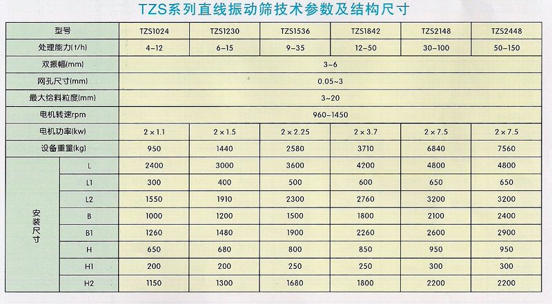 TZS系列直線振動篩采用兩臺VB(VEB)、VBB系列振動電機為激振源,采用自同步原理,物料在工作面實現拋擲運動,達到分級目的,篩網采用為三明治篩網、不銹鋼條縫篩網或聚氨酯篩網,廣泛適用于水電、煤炭、冶礦山、建材、化工等行業對各種細物料進行分級和脫水、脫介。